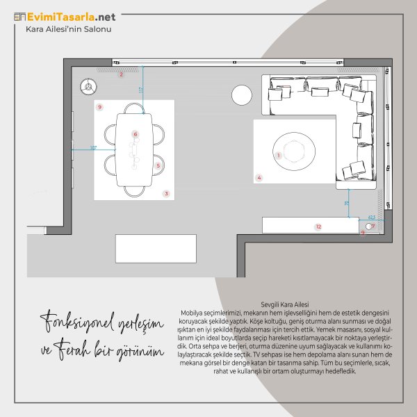 ⭐ Sürecin sonunda size mobilya seçiminizi planda numaralandırılmış olarak paylaşıyoruz.